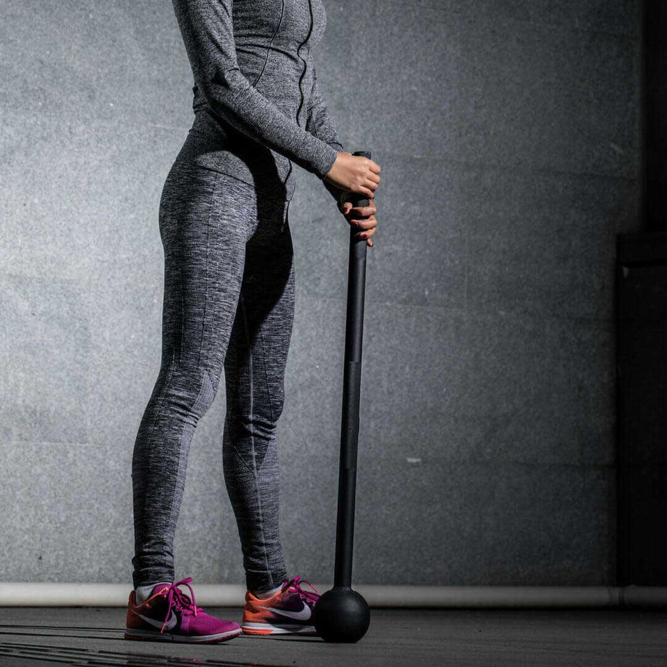 The uneven weight distribution of the steel macebell activates your core in order to keep the Mace under control while performing swinging motions. Many Steel Mace movements entail cross-body swinging movements that activate and engage the core, especially the obliques.