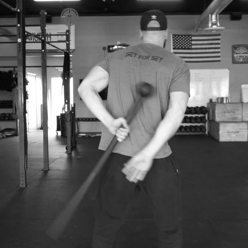 Recommended: 20-30 min total workout with minimal rest in-between rounds or when needed using a mid-to-heavy size mace. If you can go the whole 20-30 minutes without putting the mace down, even better.
