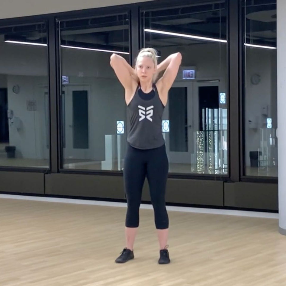 - Upper Back: The rhomboids, traps, and erectors all help stabilize the shoulders as the weight moves around the head. They pack the shoulder girdle in place to ensure the kettlebell is moving in a pathway that is safe and ideal for the shoulders. The upper back muscles work together to keep an intact, neutral posture during the movement.